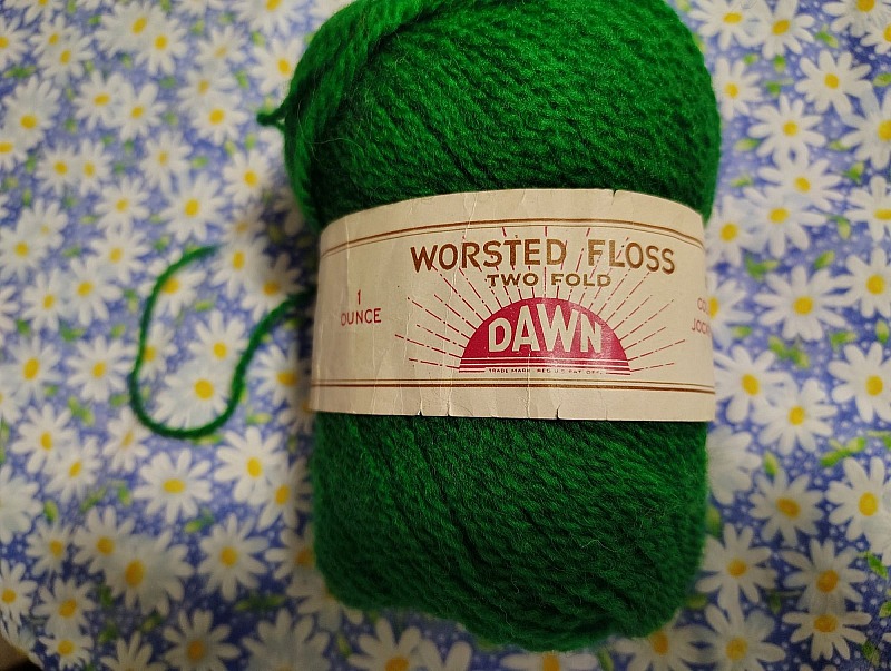 A note on the yarn from the mending compact pattern: from a small amount of preliminary research, it appears that the yarns called for ( "American Thread Company Star Pearl Cotton, Article 90 Size 5 [or] 1 oz ball of DAWN worsted Floss article W 16" ) could possibly be substituted with a modern size 5 pearl cotton thread, such as this. https://www.everythingcrossstitch.com/dmc-pearl-co...