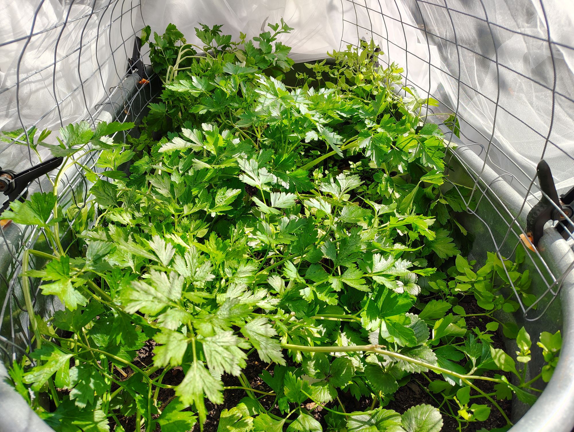 Parsley has been growing under frost cloths since fall. I do not know if it would have done this well if I had left it uncovered.