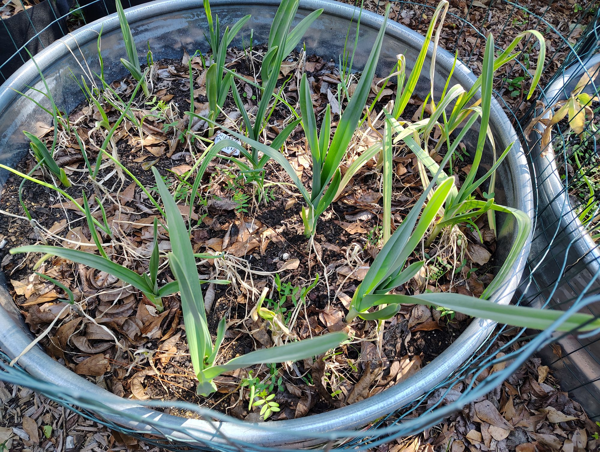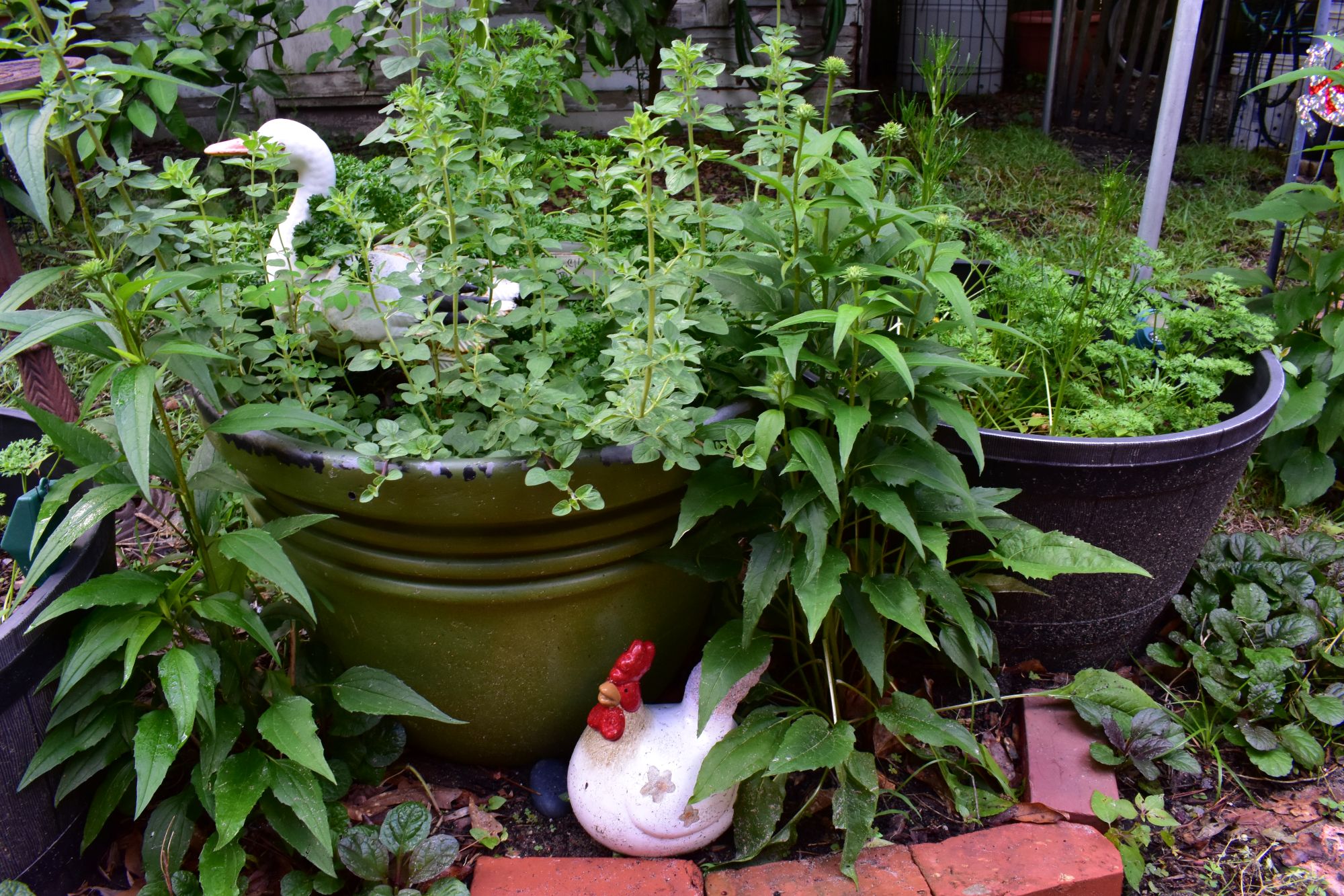 Cilantro loves the cold weather. The cilantro is in pots sitting in a cage and those are weeds growing around the pots.