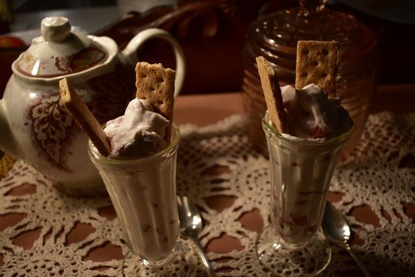 The vintage parfait glasses can sit in the cupboard and never be used, or become that small special dessert. Vintage parfait glasses are very small as servings were small. They hold just under 4 ounces, compared to six to 12 ounces today.