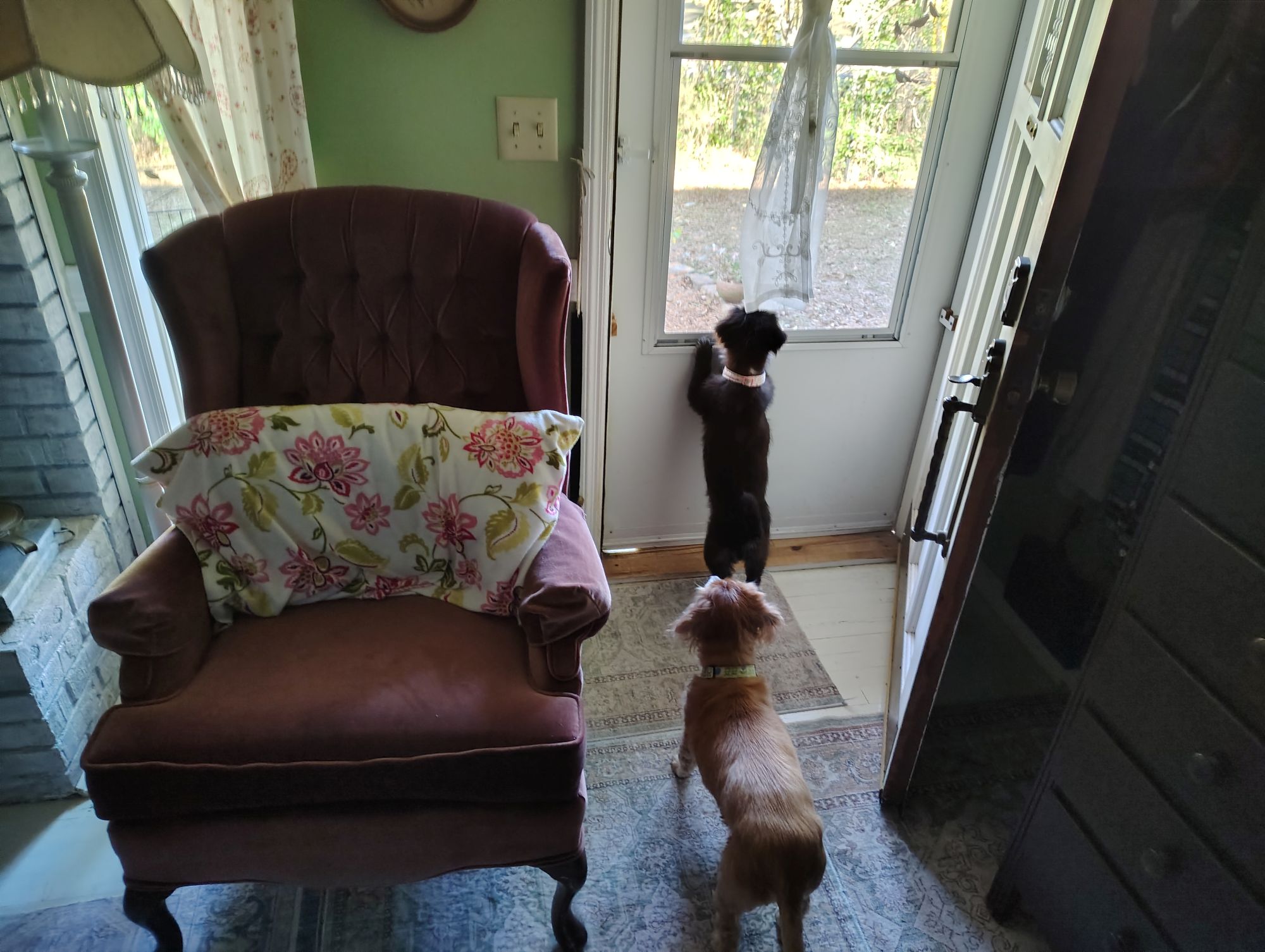 Charles snapped a picture of Bernadette at the door and Elizabeth behind her after I walked out to the front yard without them. Charles is enjoying his retirement, our main issue is there is so much to do that we do not know where to start.