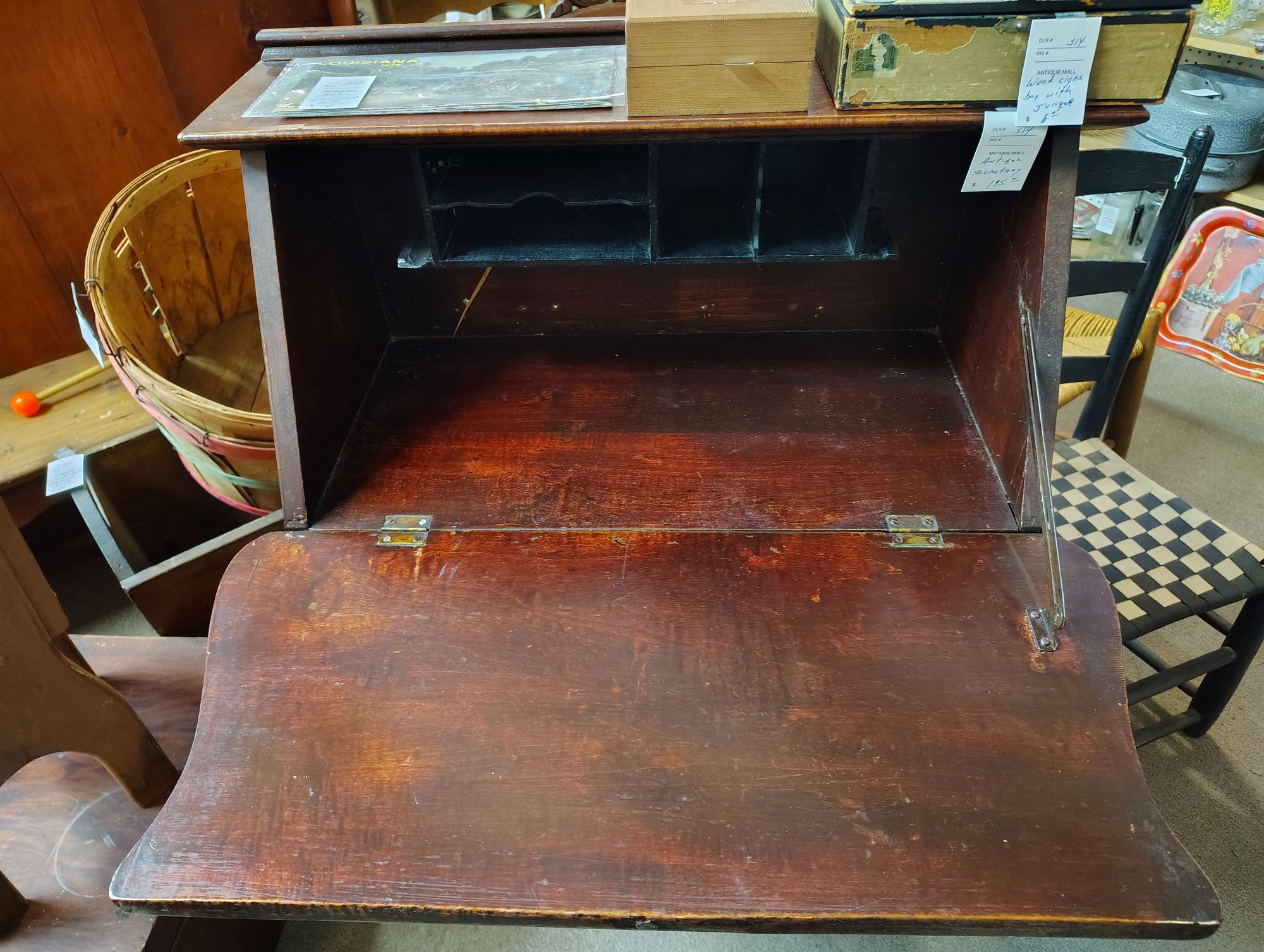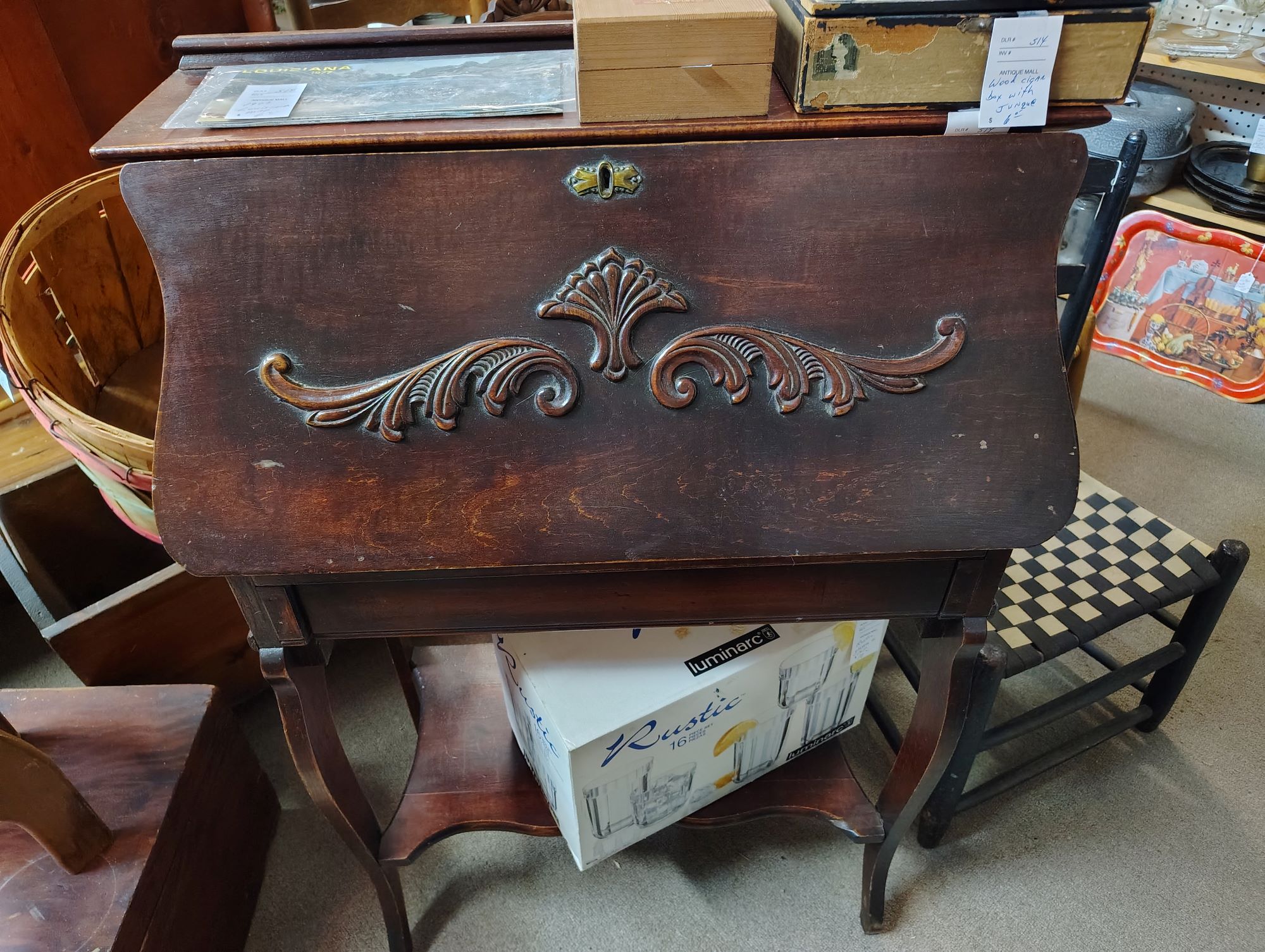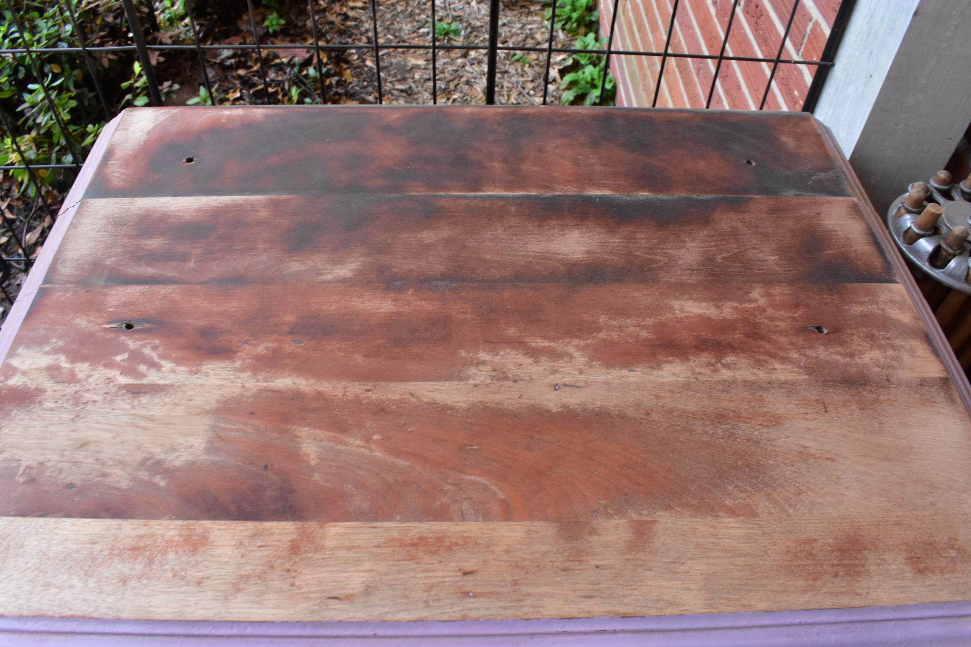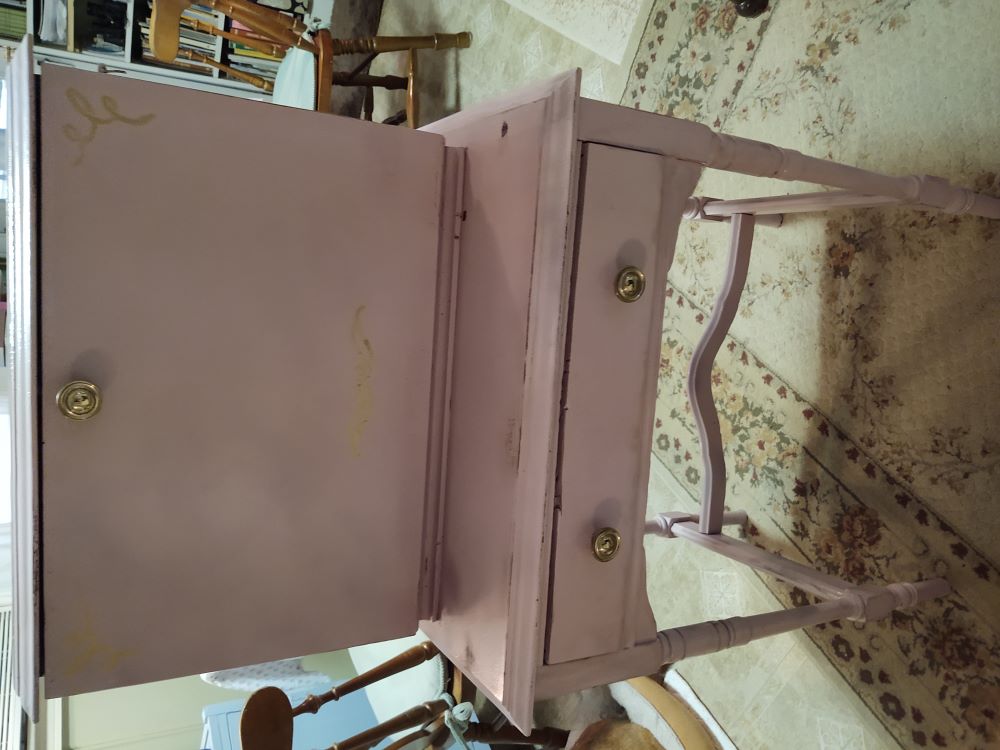 January of 2024 we bought this desk at a local antique, second hand, thrift type store. I saw the potential in this secretary desk painted pink. I noticed that under the pink paint was oak wood. We brought it home and I sanded it down.
