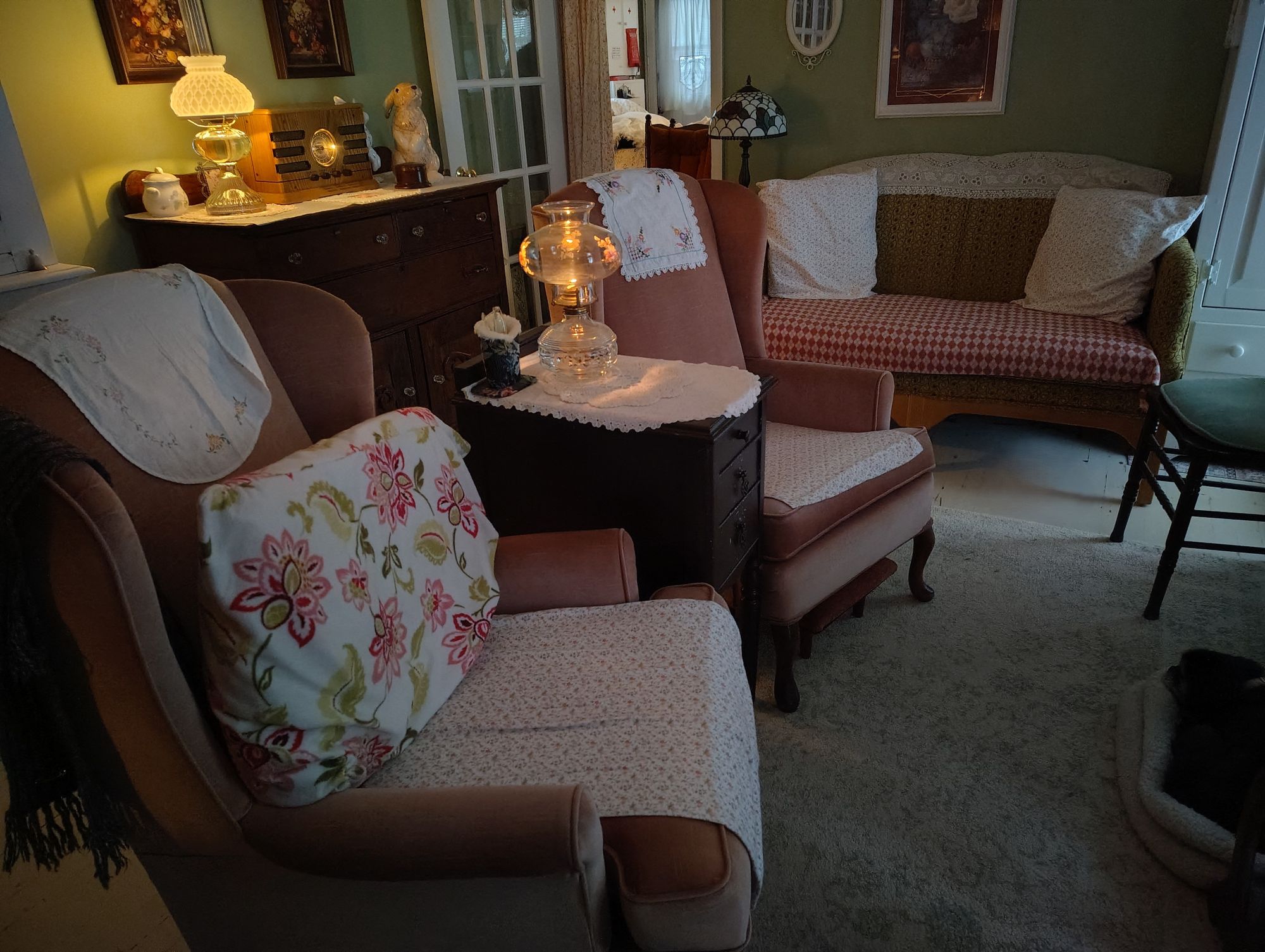I have removed the led votives from the oil lamps and put the wicks and oil back in the lamps since we are now in a cold season and the warmth from the oil lamps feels good. We have started a fire in the fireplace twice now.