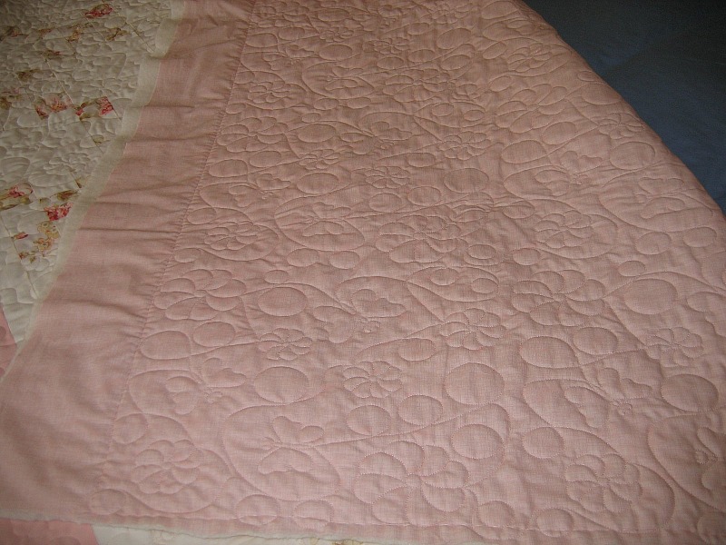 Claudia O: Your quilt is beautiful. It looks very vintage. Your "pink loving friend" will be thrilled with it I'm sure. Quilting is so detailed and exacting that I have really never tried it but I do admire quilted things and all the time spent putting it altogether. I have three quilts that my grandmothers and mother made and have them hanging in our bedroom on a quilt holder that my husband made for me.