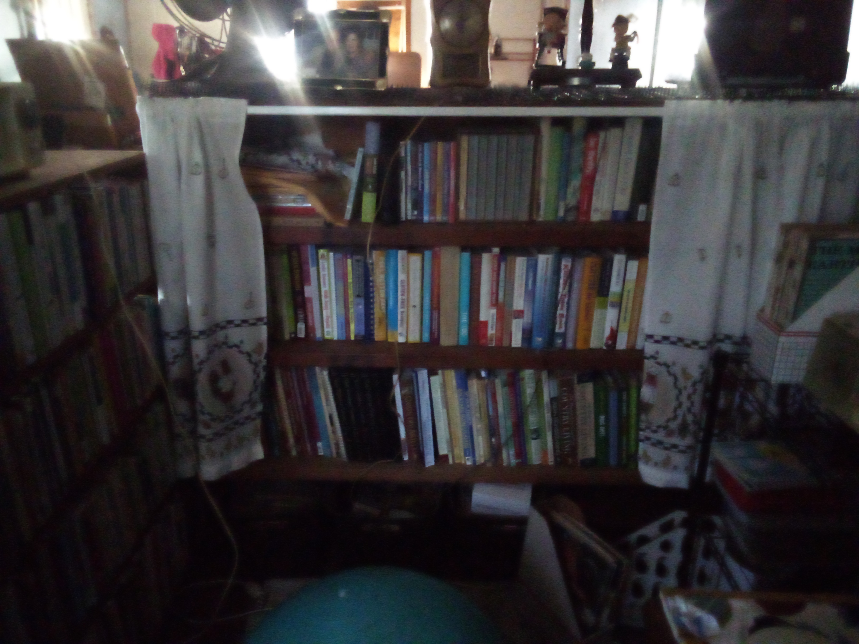 I also got my library area organized. I like to put curtains in front of the books for some reason. I still have a bit left to do, but it is mostly done.