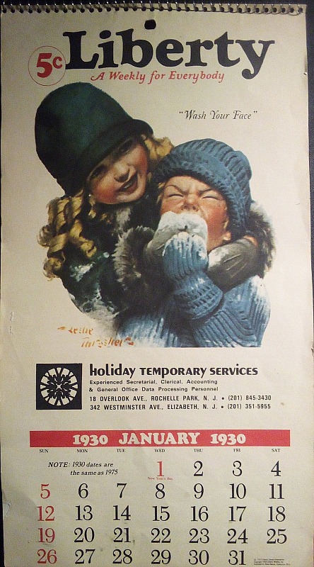 On a different note, I got my 1930 calendar. It is actually a reprint from 1975, when they had the same days as in 1930. If anyone wants this calendar, you can buy it on eBay. I think it was about $13. It looks like you can also get the Liberty 1931 calendar for about $13.50 also.
