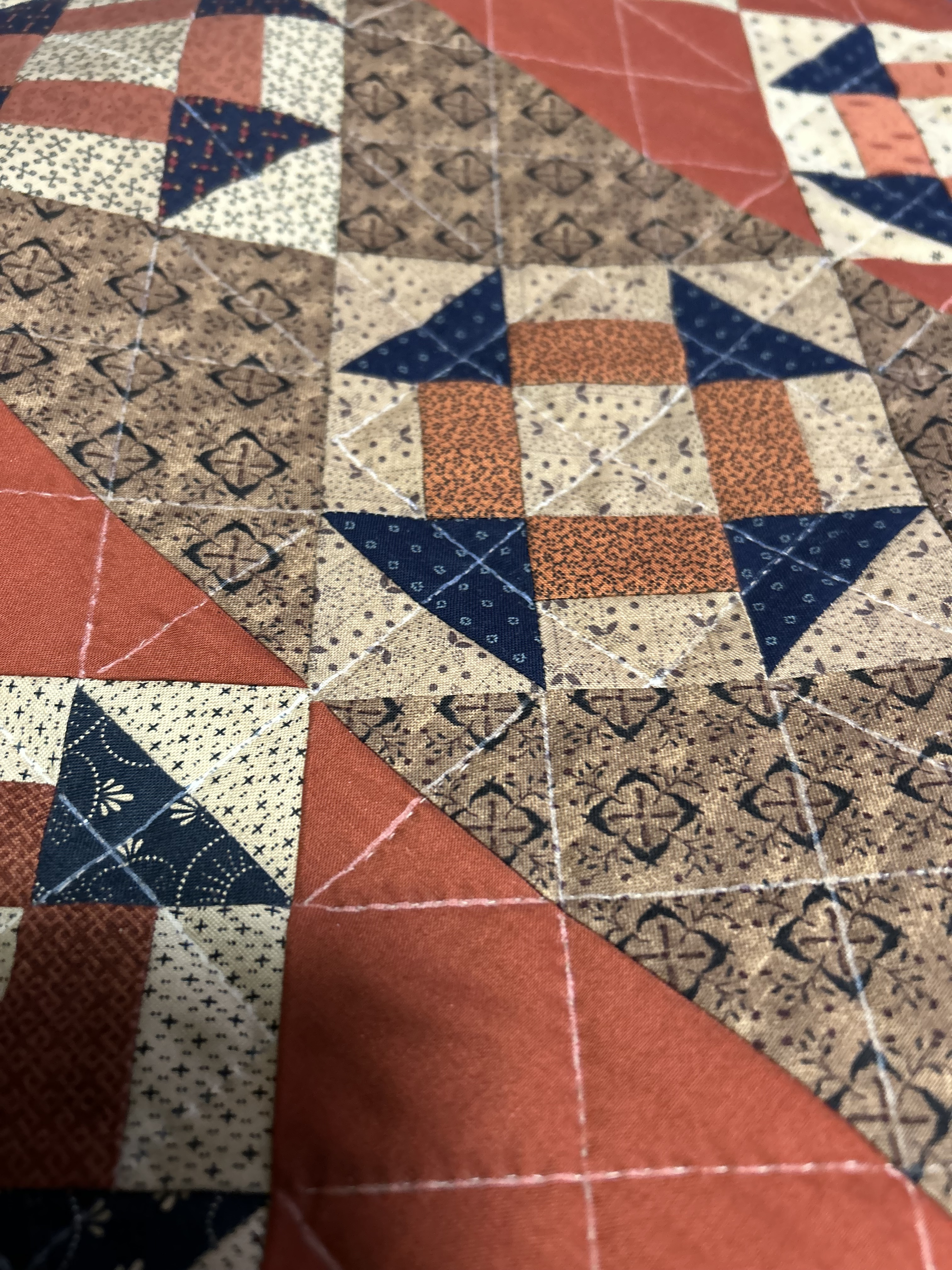 I make patchwork quilts, and have them for beds, for laps and for daytime naps on the sofa. My kids had a hexagon one (my first attempt at patchwork) as a "poorly quilt" when they were laid up on the sofa when off school with a cold or something. I love to hand-quilt where possible, it is very mindful and satisfying.