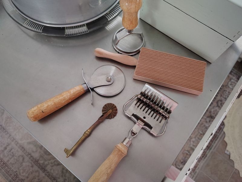 One item I have is a kind of pasta cutter with a handle and a row of four wheels in front and four wheels directly behind/ inline, am guessing their is trick to using it that I've not mastered yet nor the purpose of the extra wheels, to date the front row cuts ok but then the back row sticks to the dough previously cut, causing a right mess ;)