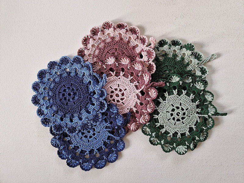 Sanne G, those are lovely pot holders, the design is very detailed and would be beautiful to put under hot bowls on the table. :)