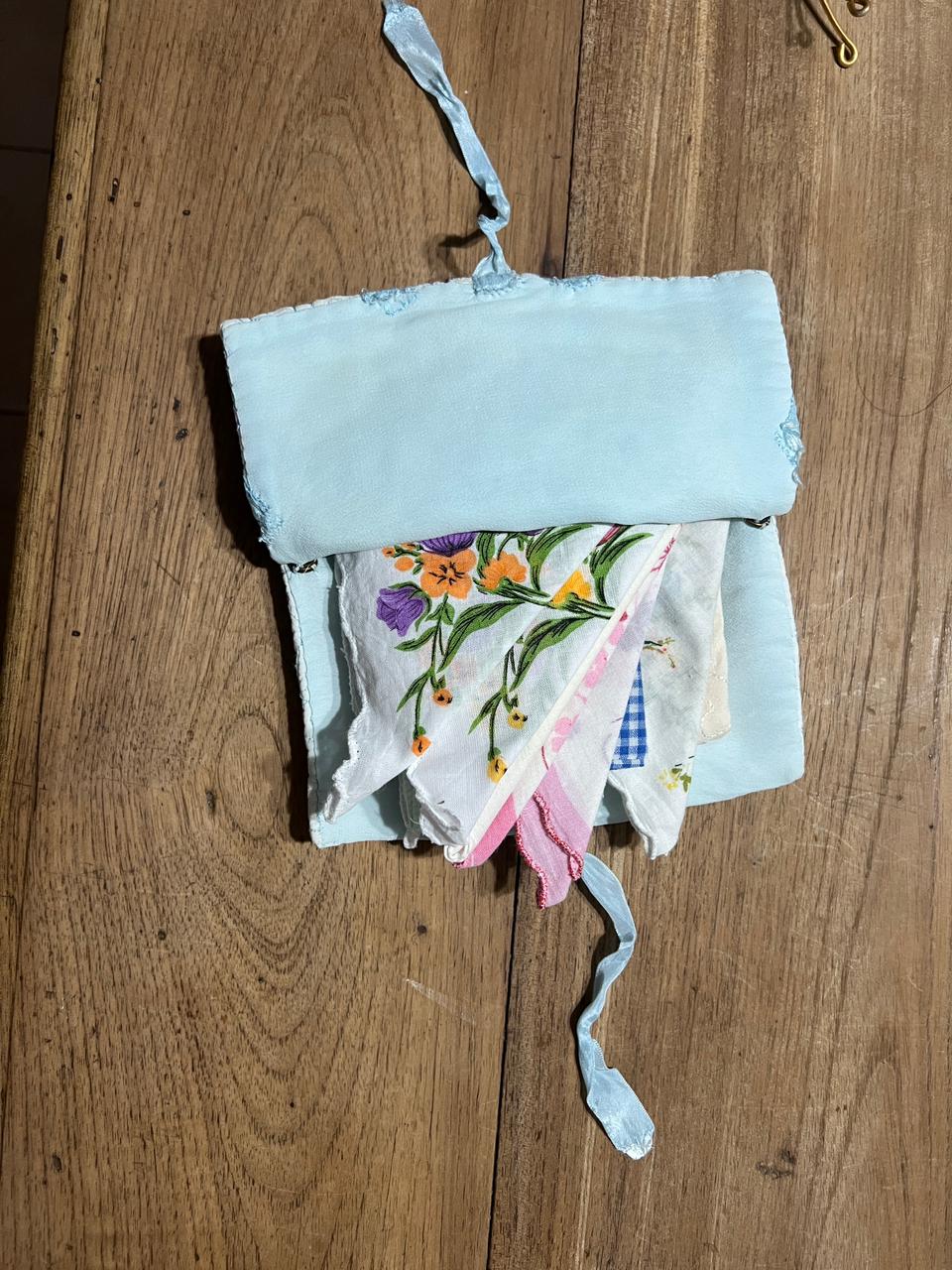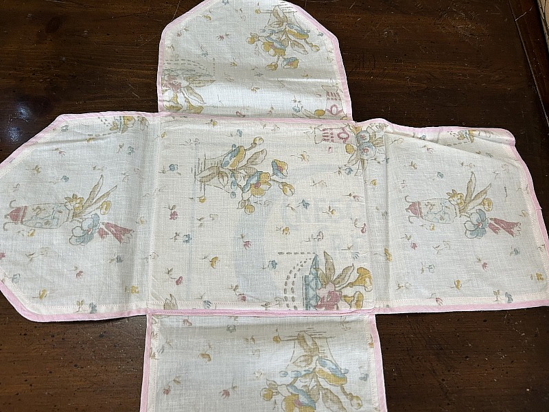 I do have something I think you would like or be interested in. It is for napkins so they stay fresh and clean. It’s about 9” square and the bottom has cardboard in it that I can almost read through the fabric. I have another one that’s larger- about 14” square for table cloths.