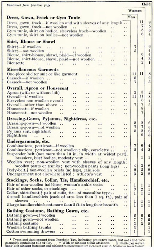 I used the last of our ration of clothing coupons on new pyjamas for our growing grandsons. I have pretty fabric bags to put their presents in, which my daughter returns afterwards. When the last of the gift wrapping paper runs out I shall use the stout brown paper saved from the chicken feed sacks. I have more than enough clothes stored away, items which fit once more, and doing the ration book challenge made me think about new purchases. This is the updated list from September 1941, there were 60 coupons each for the year. For decency, I did need a new bathing costume, synthetic fabric does not last, and I bought a warm waterproof coat in the sales last month. I darned two tiny moth holes this week using matching embroidery thread, so a wool hat and jumper are as good as new.