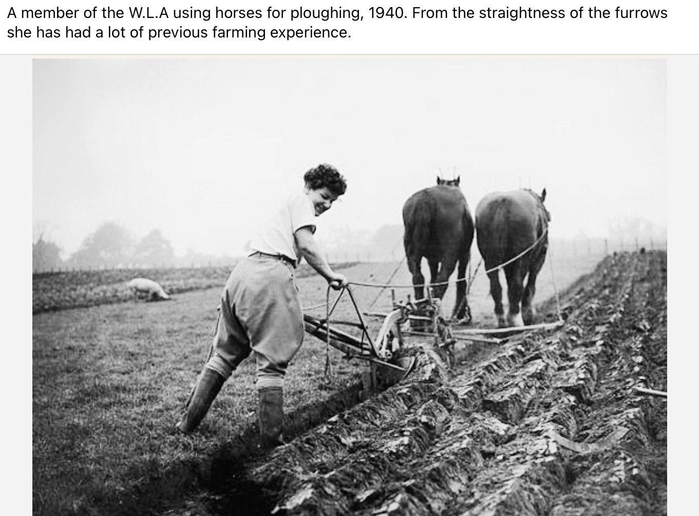 Horses were the main power source on farms, ploughing, and pulling carts. The Women’s Land Army took over the heavy work with horses on farms and in forestry work as young men enlisted. My Aunty Peggy was a Land Girl in Cornwall on an arable and dairy farm. She could make delicious clotted cream. The needs of the war increased mechanisation, with increased production of small Ferguson tractors, and others imported from America.