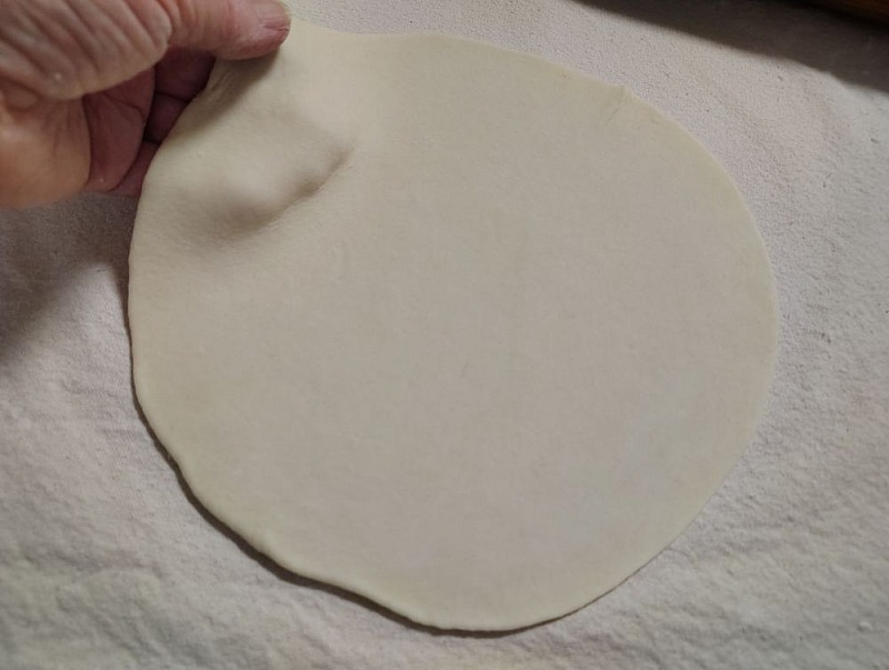 This recipe makes four tortillas the size of a flat cast iron skillet. I knead it by hand until soft, if it is too sticky I add about 5 grams of flour. I have started weighing my flour by grams and I am still experimenting with this. This has made a nice soft tortilla. You can go on Caputoflour.com and get their recipe. It is difficult for me to give a recipe right now because I am trying to find flour that my body can digest without issues.