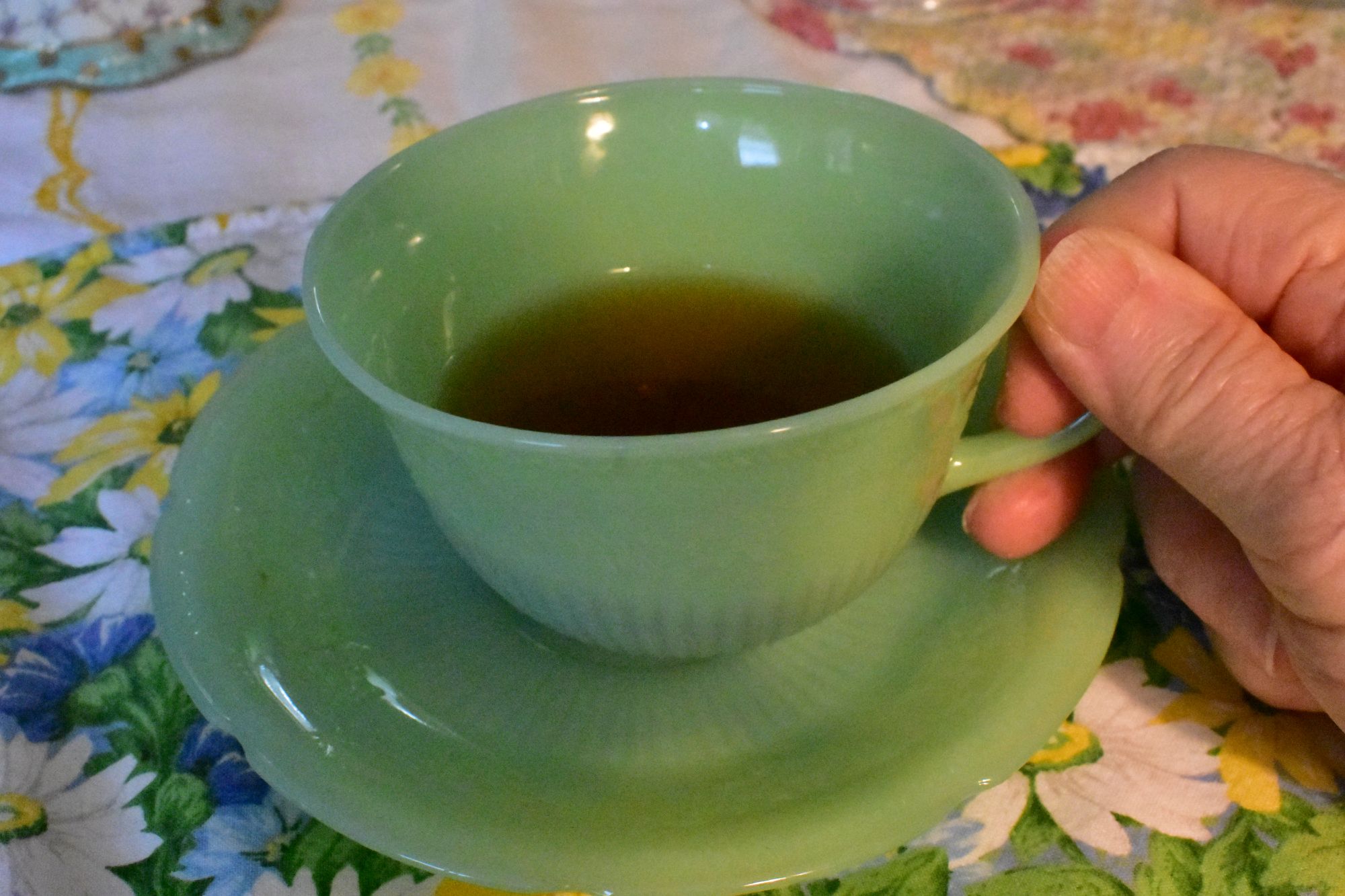 I would have had these cups and saucers during the 1940s because I would have had them in the 1930s. It really is all merged into a twenty year period.