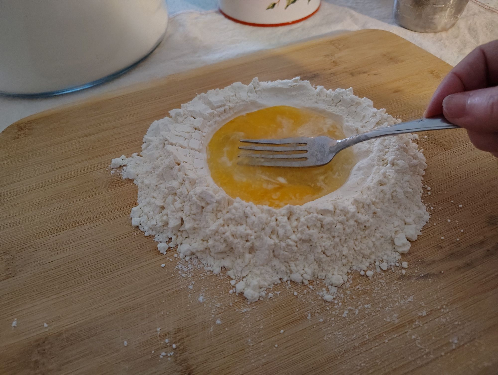 I made some homemade pasta today.  Just one cup of flour and one egg makes plenty for Charles and I.