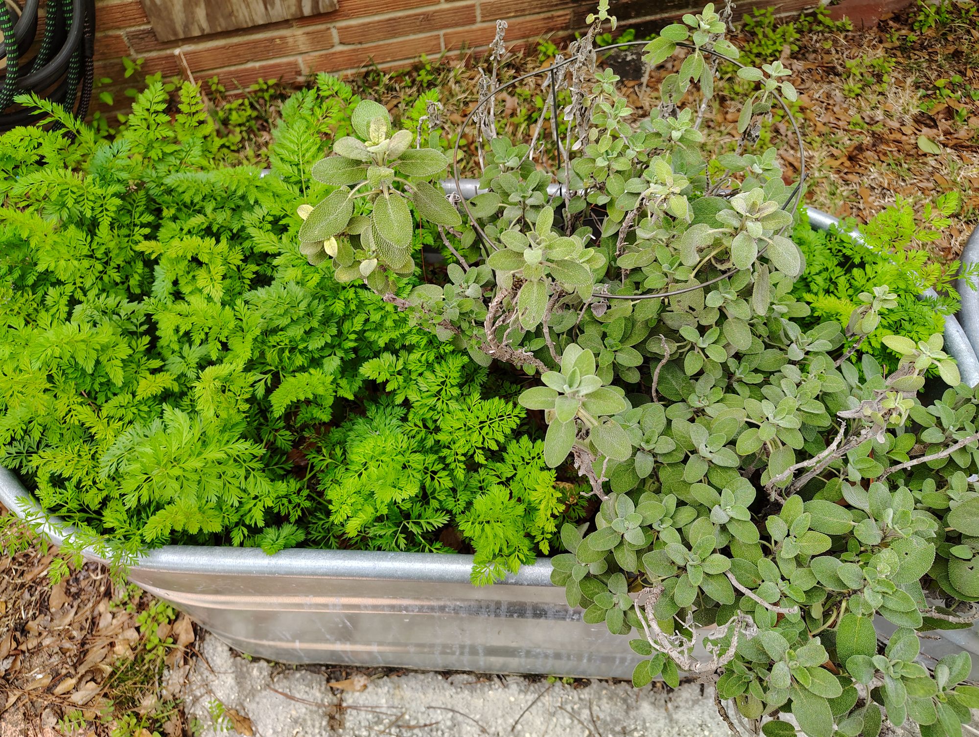 The sage and the carrots keep spreading out and seem to love the cold weather.