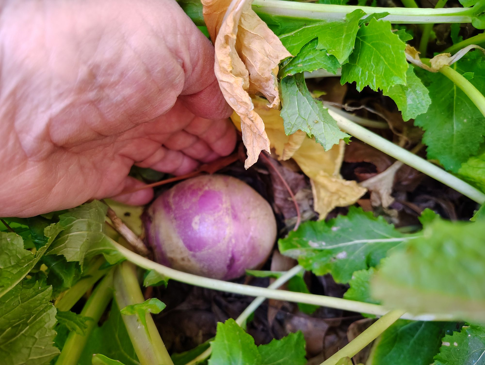 Our winter garden has done well considering the cold weather. Our turnips have been uncovered all winter, I planted the turnip seeds in the fall in the month of August and they have gone through many stages as well as an attack of pests early on and I did a lavender spray and Charles picked off as many as he could. When the freeze came the bugs were gone.