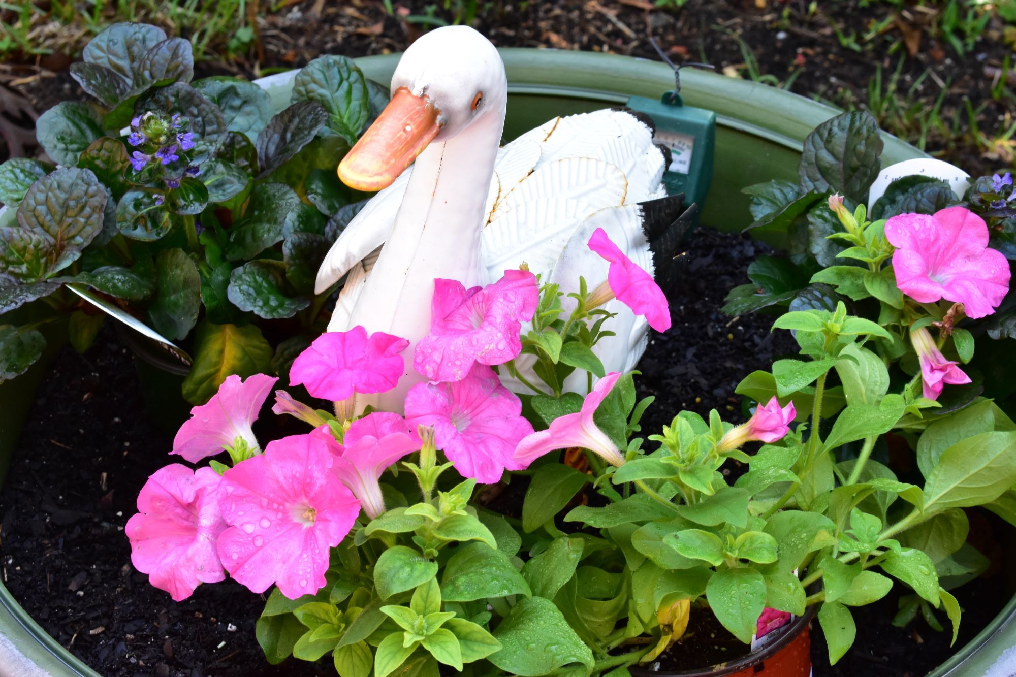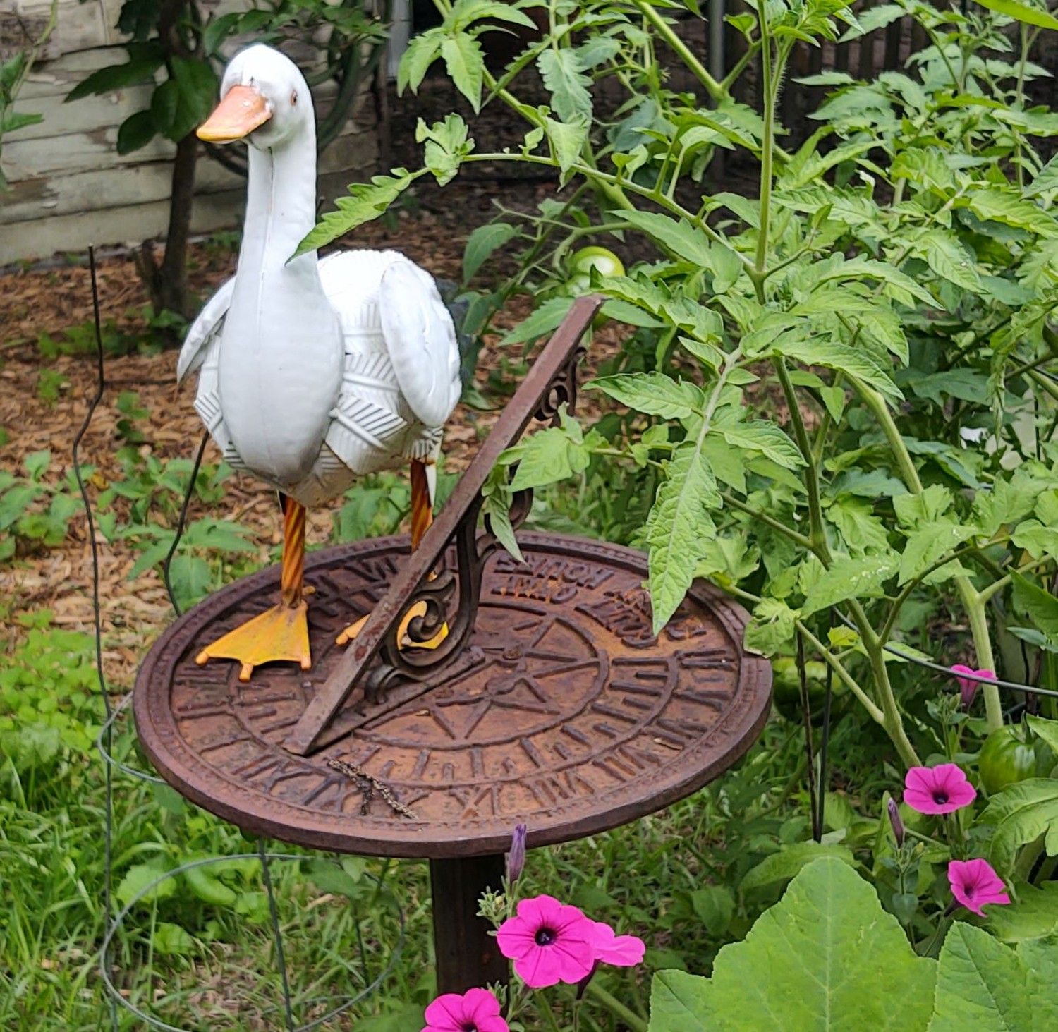 It is all about our perspective. As many of you know that several years ago this metal duck came into our life and I named him Albert. He oversees our garden, he is our weather gauge. If he is wet it is raining, and dry it is not raining. :)