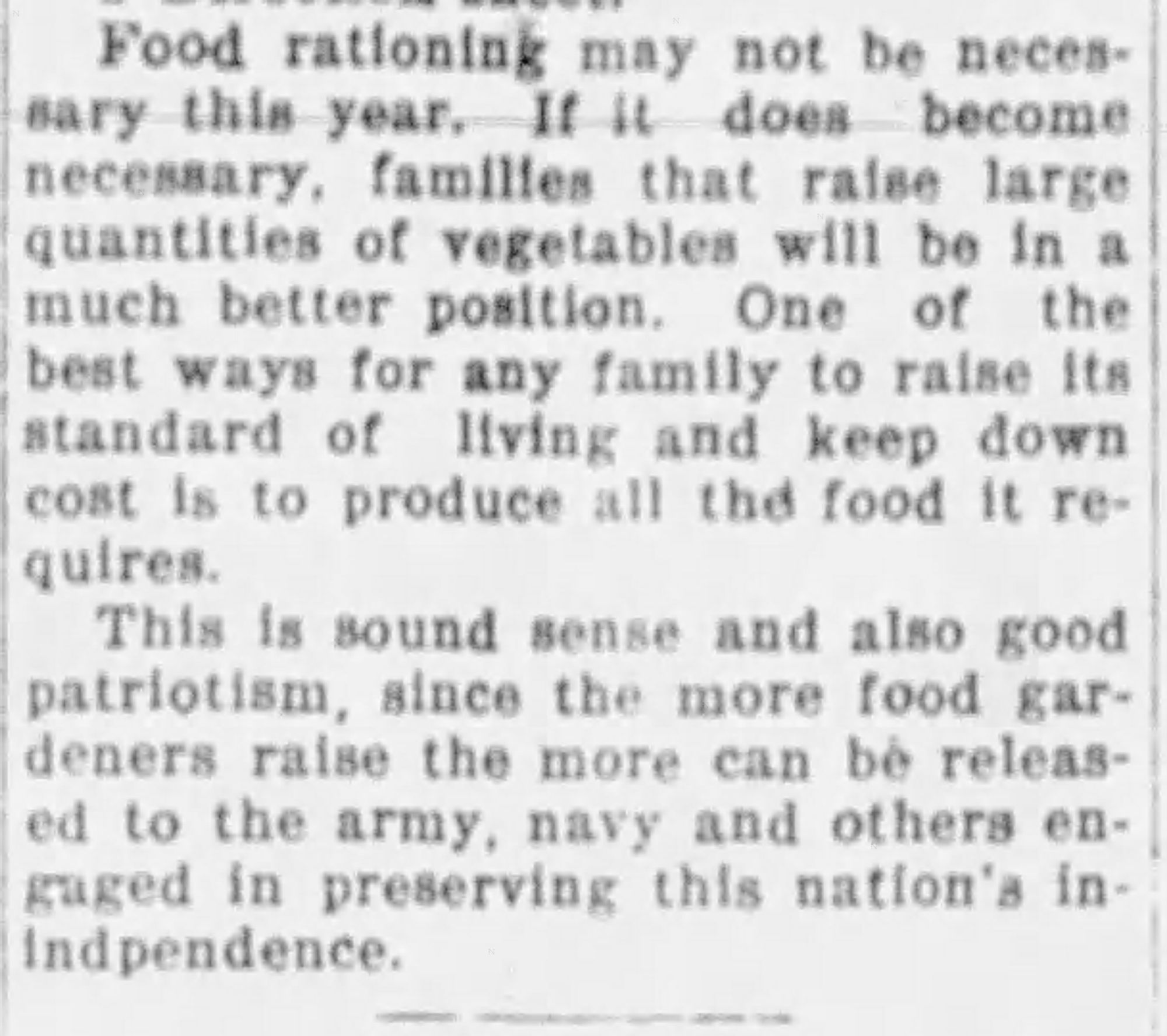 People were starting to plan victory gardens to be able to get started as soon as weather permits.