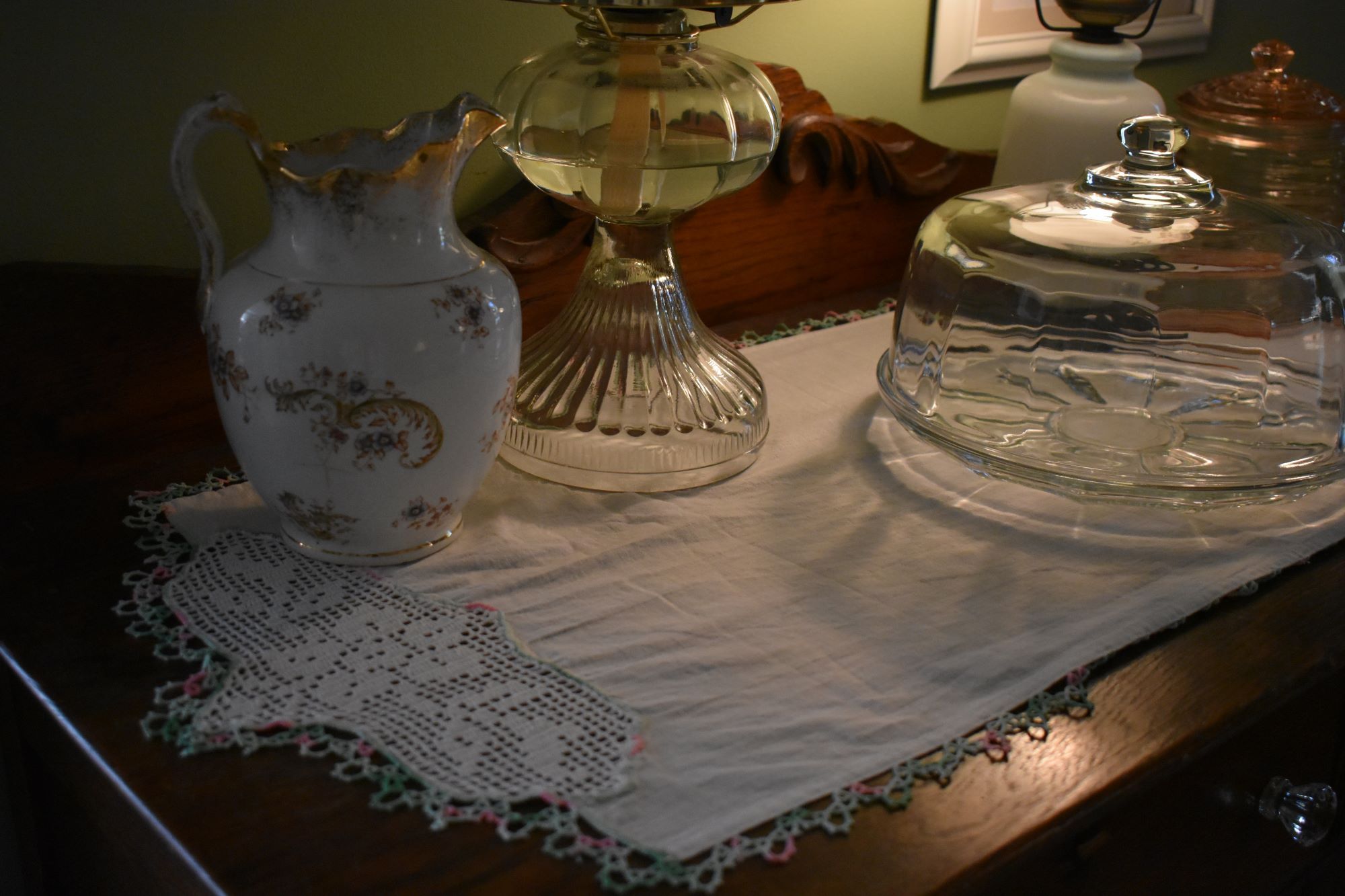 Filet crochet was popular during the 1920s and 1930s. Cotton crochet thread was used to make the filet crochet pieces. If you do make some household items during October take pictures to share with us in November what you have made. Crochet edging was also popular, and pretty collars were still being made. Most any type of hand work.