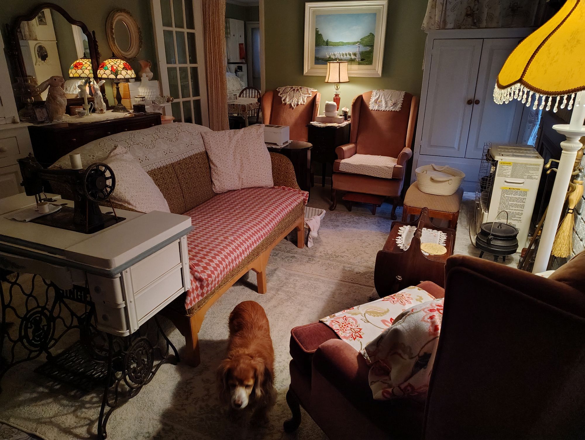 We decided to place our furniture pieces in the rooms for functional purpose and for comfort. This is not a 1940s thing as far as our history study. our history study is to learn about the past and discover how they got through the tough times and possibly learn things that could help us today.