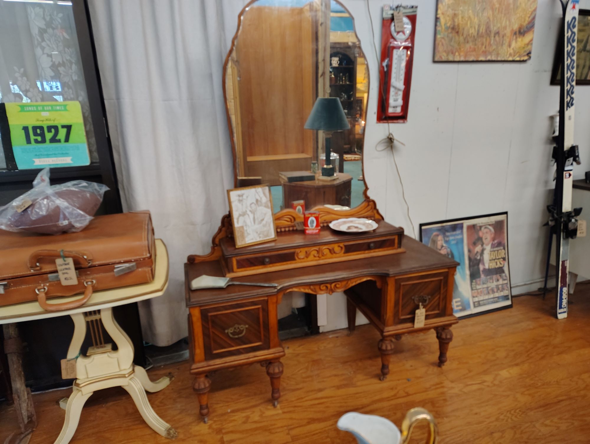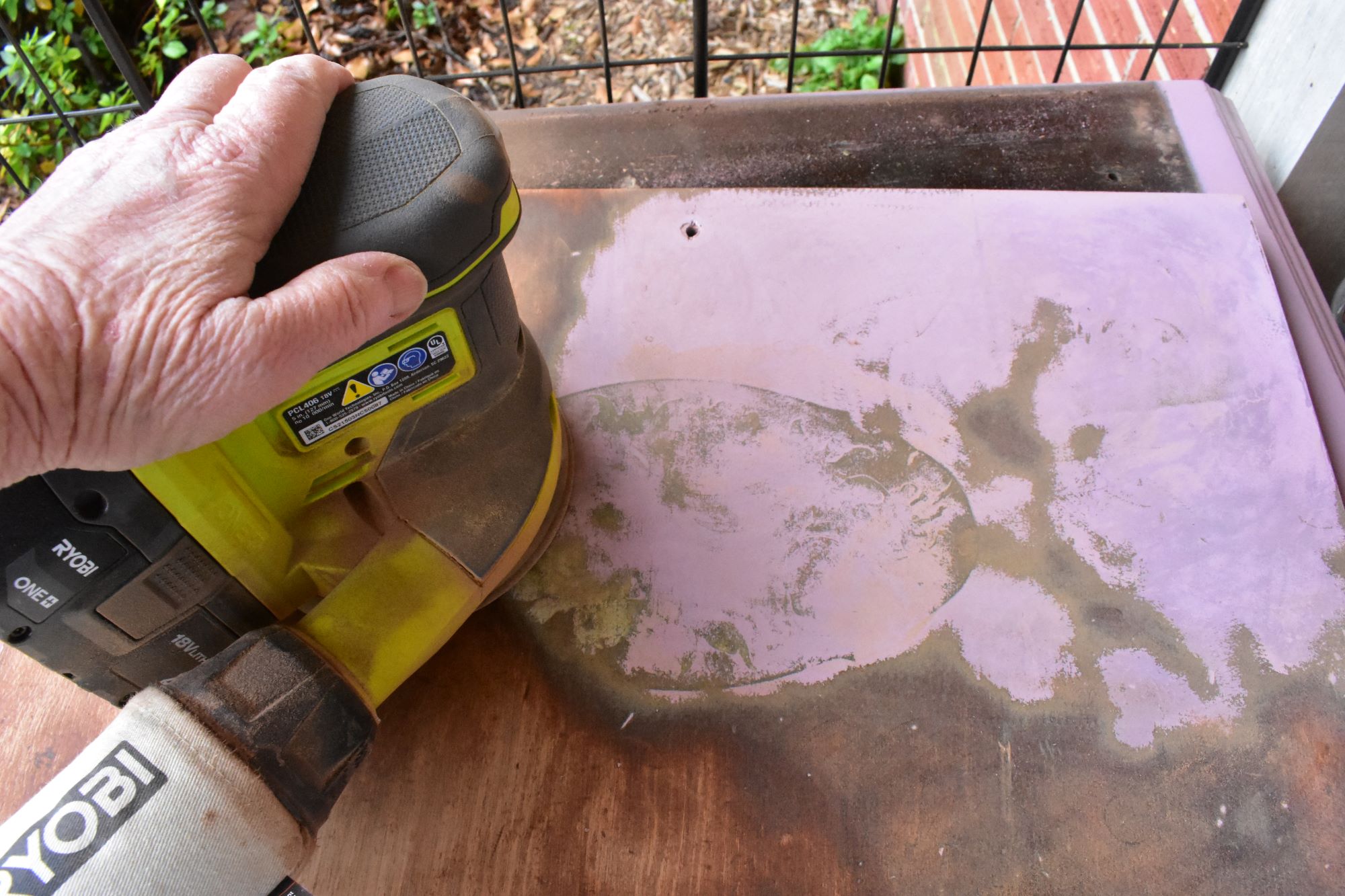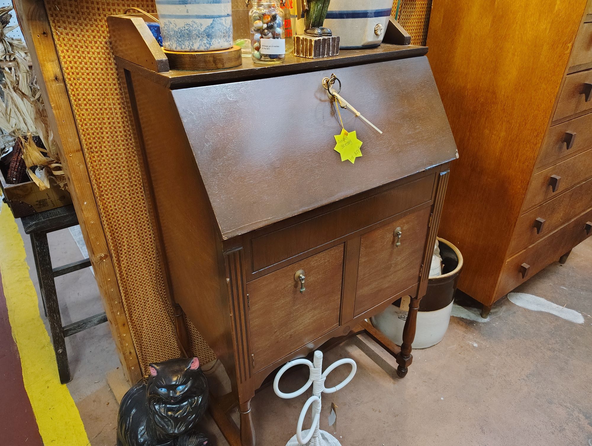 January of 2024 we bought this desk at a local antique, second hand, thrift type store. I saw the potential in this secretary desk painted pink. I noticed that under the pink paint was oak wood. We brought it home and I sanded it down.