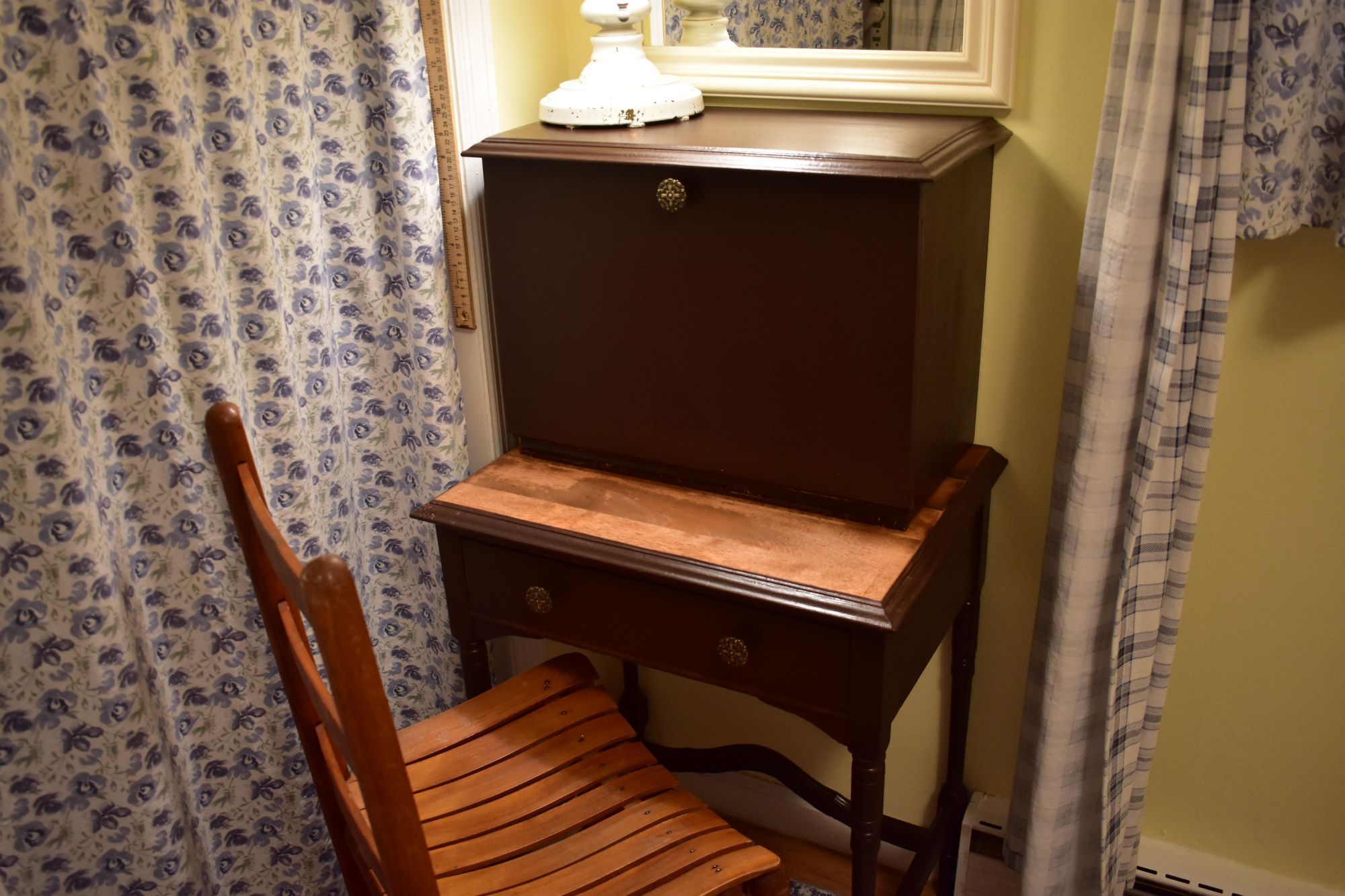 I completed the little desk and it looked lovely. It was once again more like it was supposed to be. The year before this desk project Charles and I completed stripping paint and refinishing our bedroom floor.