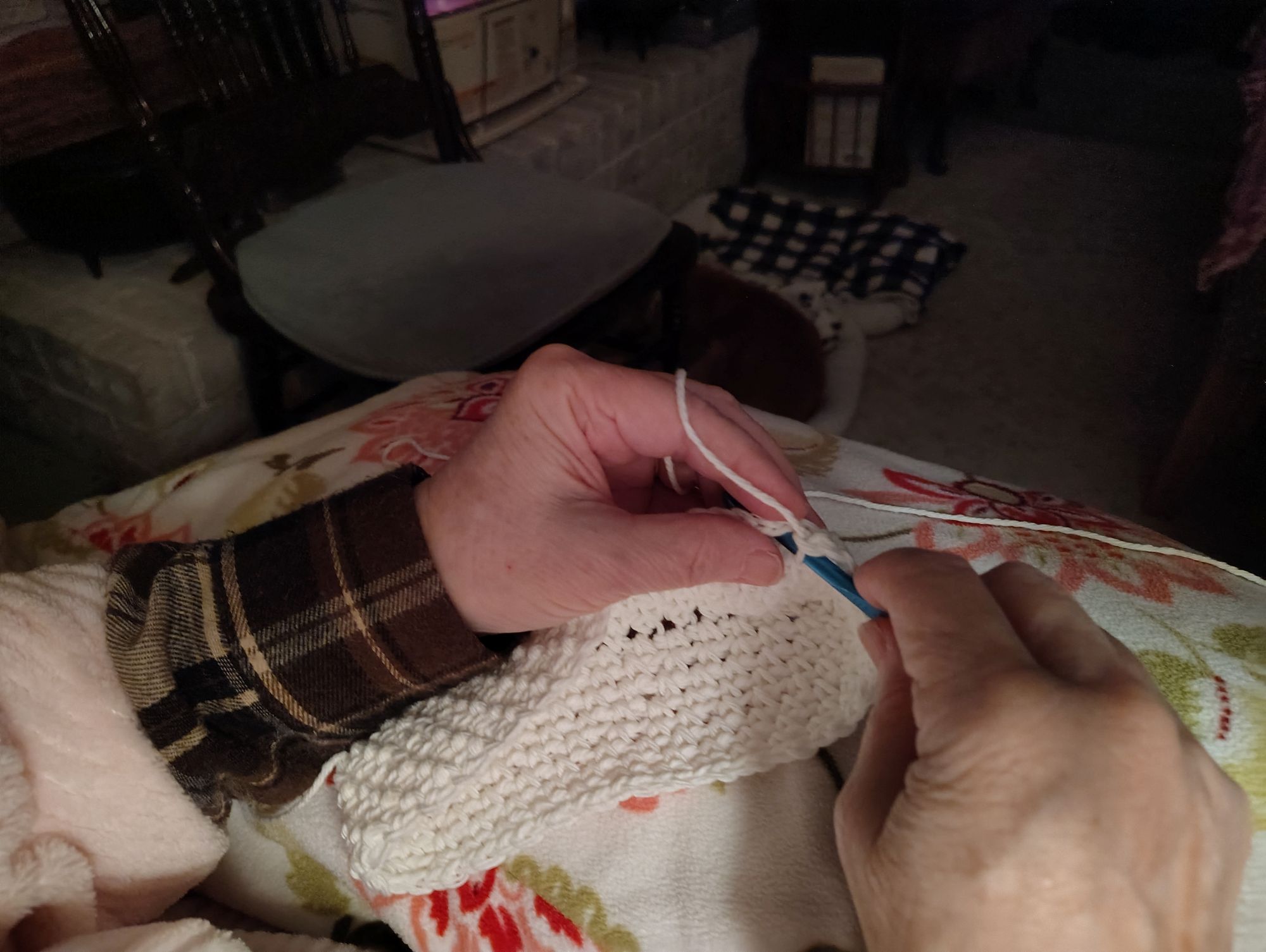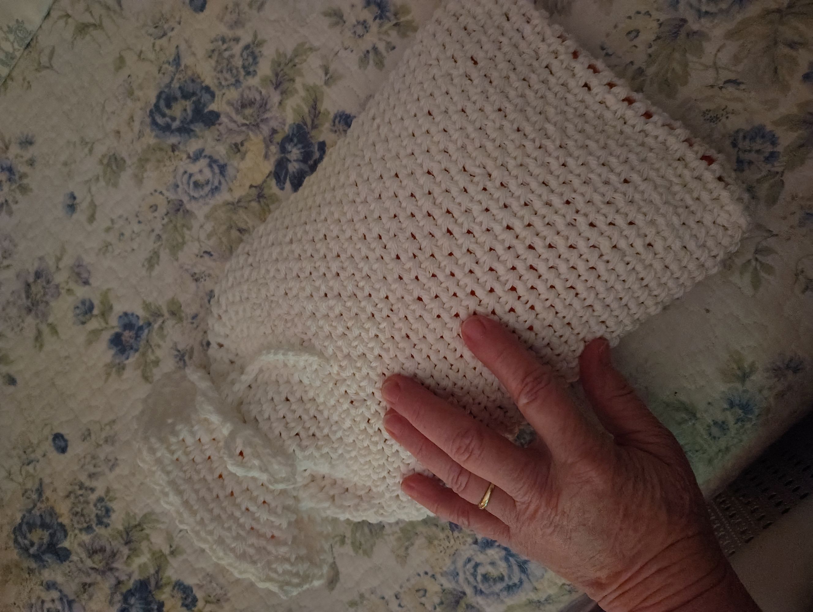 When my mother was on hospice, one of the hospice sitters came to give me a night off so I could go to bed and sleep. I had not had sleep in days and they could tell that I needed to sleep .They sent someone to sit with my mother through the night and early that morning when I got up, she handed me a kitchen towel with a crochet top to hang on my cabinet handle or the front of the stove. She had crochet that top onto that towel during the night to leave for me. I will never forget her kindness.