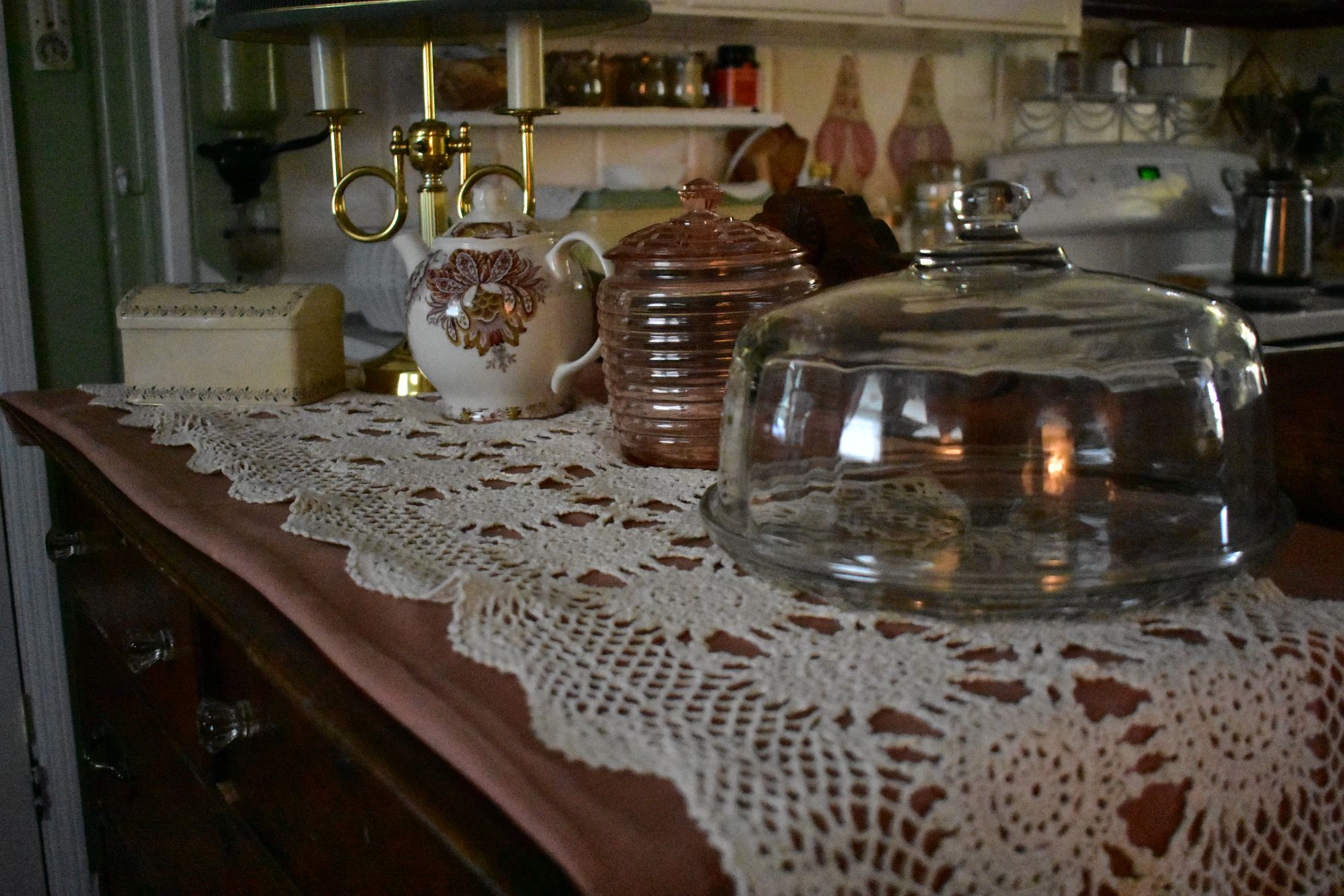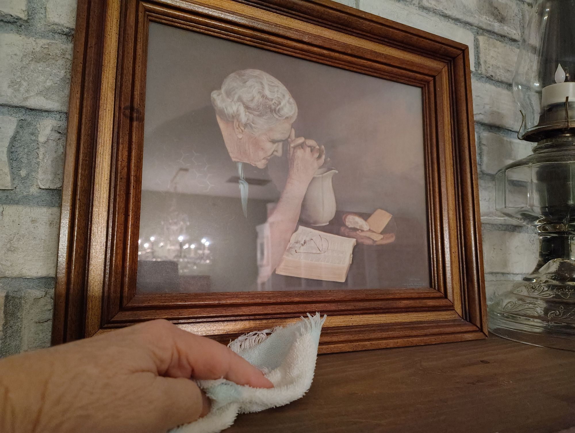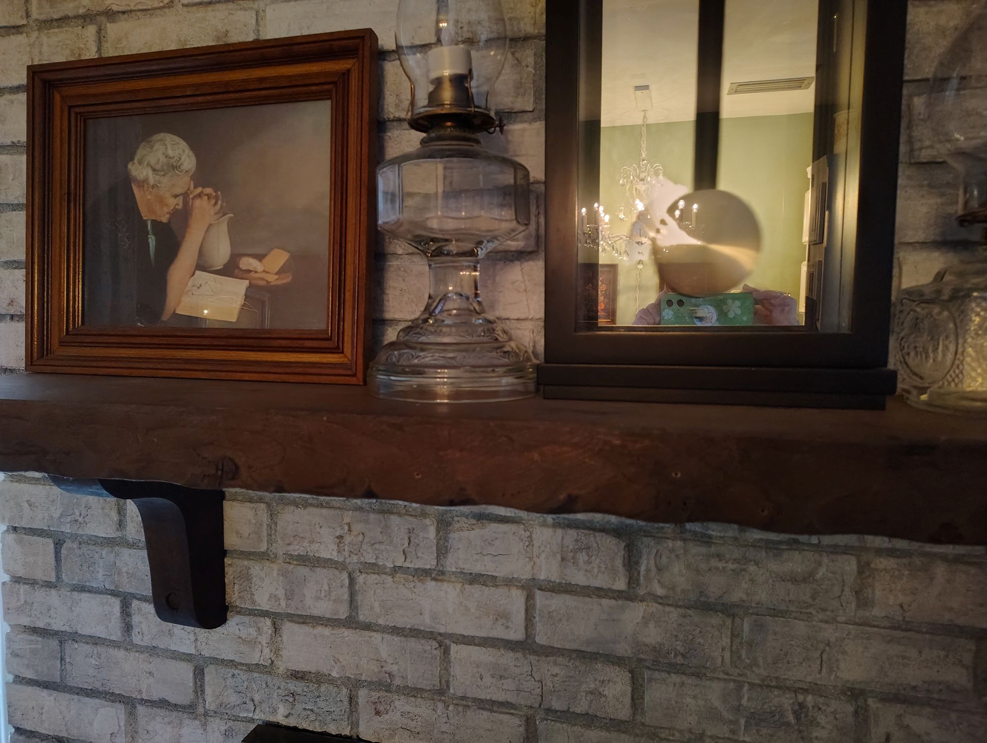 I noticed in this picture above, that the mantle was not only dusty but many things were sitting up there and it must be when I am asleep that they all have a party and move themselves around because I am sure that it is not me.