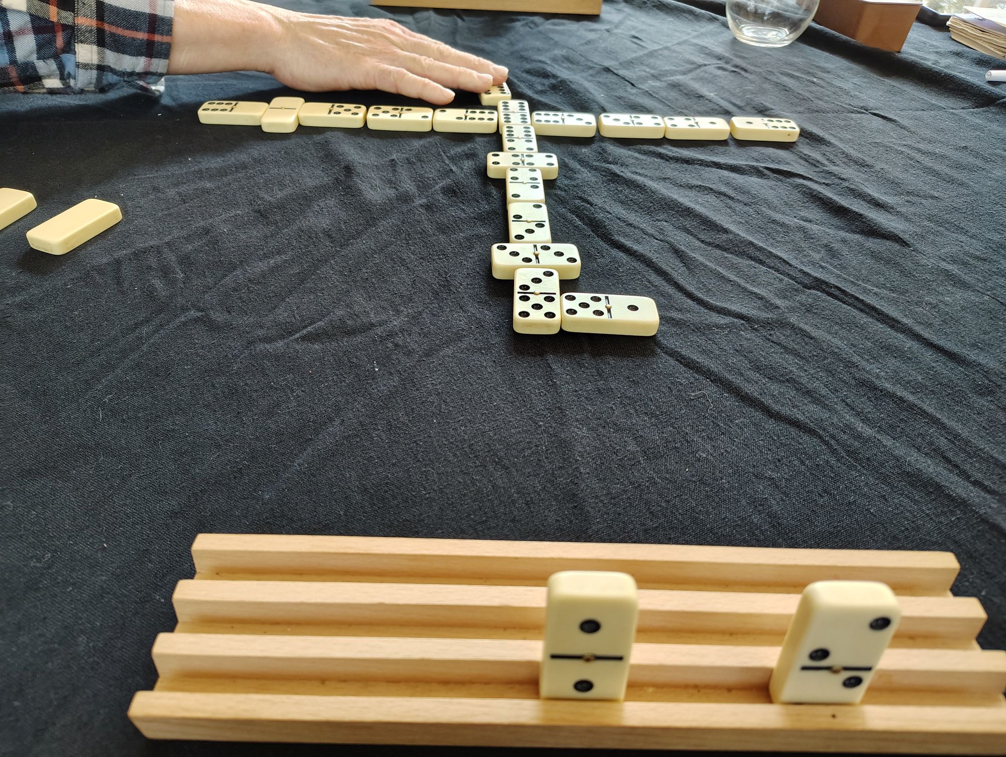 During the recent holidays, we played dominos with our son and daughter-in-law. We enjoy playing dominos.