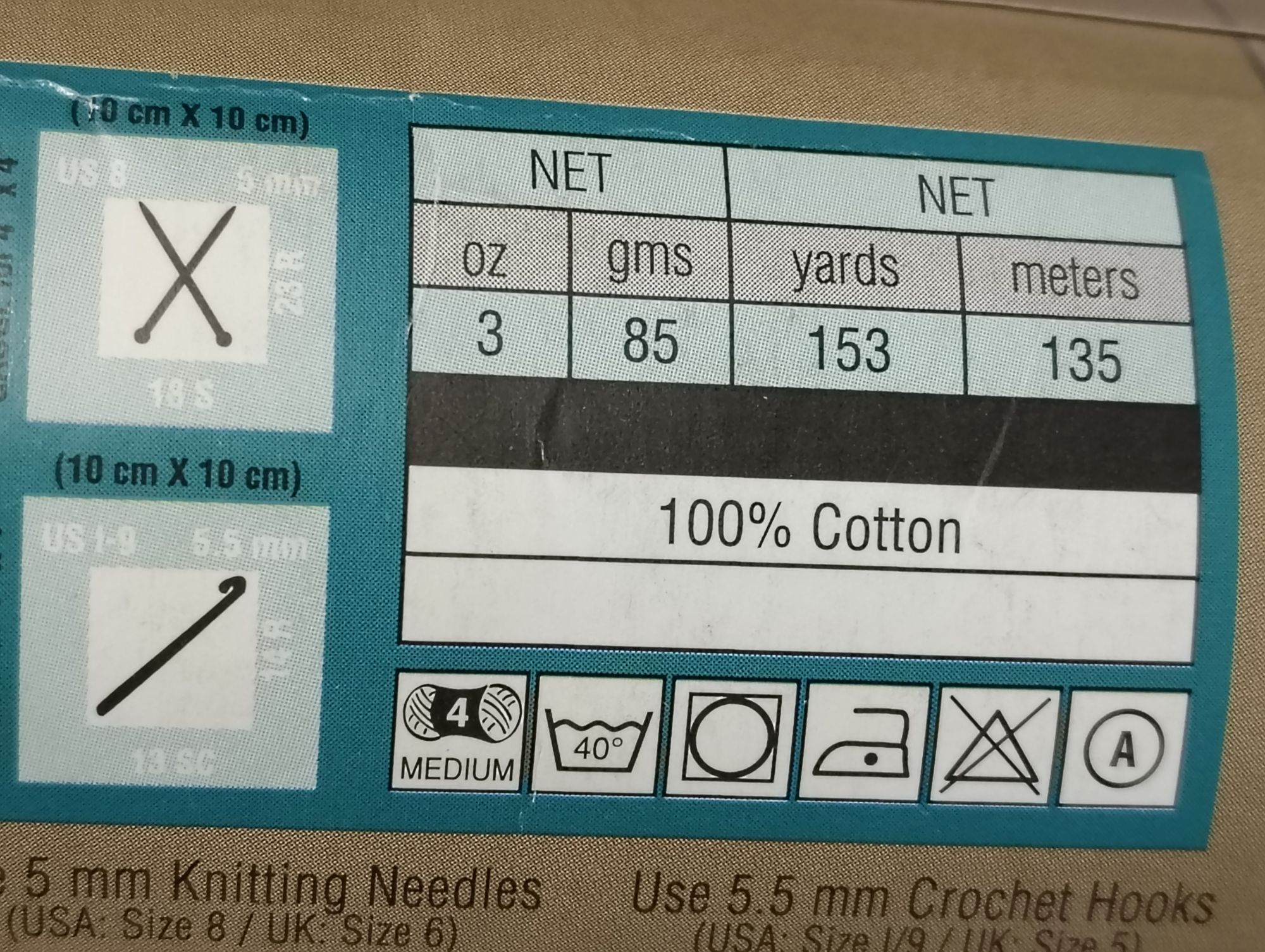 The baby washcloth yarn I am using is called "I love this cotton" 100% cotton and I used a size H/8-5.00MM hook. I will link the video that I used to make this washcloth. You can adjust to the size you want for baby or for adult.