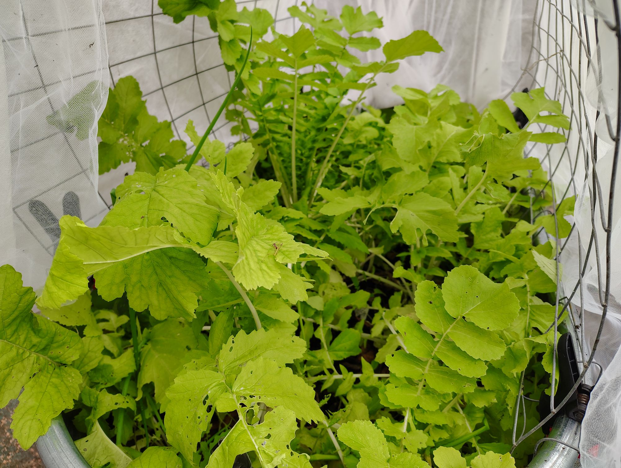 We are now thinking about next years victory garden, this is a raised tank of Daikon radish we have growing in our backyard garden here on December 11 1941/2025. We have reached freezing mark twice here at our house now. Our official winter will start on December 21 but it feels like it has already started.