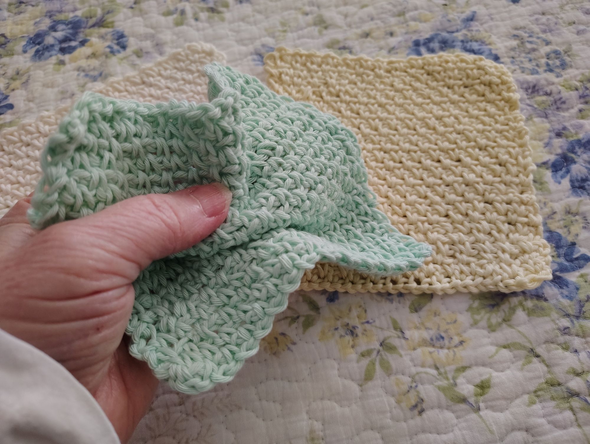 I have been crocheting baby washcloths for our great grandbaby, he is turning one year old so I made him some small washcloths he can hold on to. I used the moss stitch.
